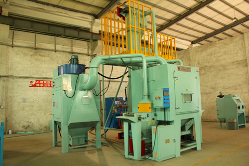 五 砂料的回收 噴砂后的砂料及粉塵通過風力循環送至儲砂斗。主回砂管由特制的高耐磨無縫鋼管制作而成,管內襯托高耐磨的硅膠板,可以保護管道的磨損。回收方式采用上進風,下抽的形式,有效的把砂料回收到儲砂斗內,回收效率可達到到99%。